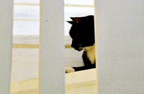A photo like this shot of Felix, taken with my cell phone on the white stairs that lead up to John’s office, really “pops” due to the contrast…