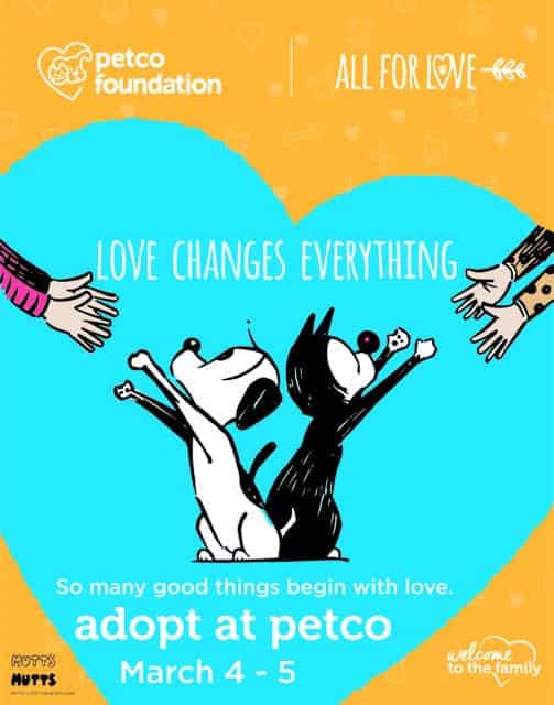 Beyond the two big events in the Big Apple, throughout the “Love Changes Everything” campaign (which runs through April 2, 2017), contributions of $10 or more donated at a Petco or Unleashed by Petco store checkout will receive a reusable MUTTS-themed shopping bag.
